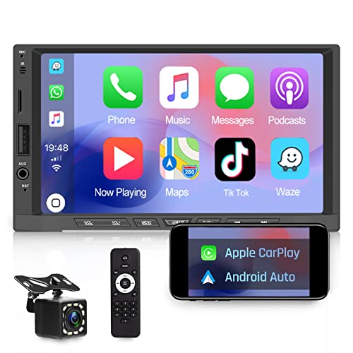 NHOPEEW Autoradio 2 din con Android Auto e CarPlay, stereo auto Bluetooth supporto FM USB SWC Mirror Link, Telecamera Posteriore