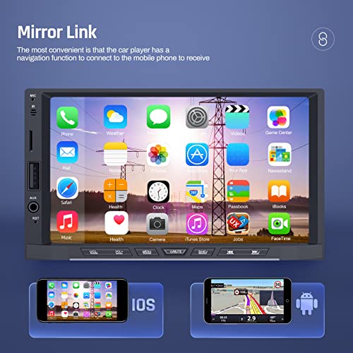 【Mirror Link】 La radio a doppio din supporta la funzione di mirroring dello smartphone per la maggior parte dei telefoni. Lo schermo del tuo smartphone può anche essere rispecchiato sullo schermo del dispositivo. L'utilizzo delle app su un grande schermo ti darà un'esperienza migliore. (Supporta Android / iPhone, tramite la linea USB originale del telefono può essere sincronizzato con lo schermo integrato)