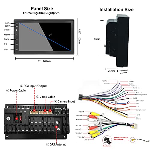 【Autoradio Android da 7 Pollici】Specchio in vetro temperato HD da 7 pollici 2.5D con autoradio touch screen ad alta risoluzione 1024 * 600, esperienza visiva più sensibile e migliore. Sistema Android 9.1 con doppio ingresso adattatore USB. Si prega di confermare che le dimensioni di installazione 178 (L) * 102 (H) * 45 (W) mm dell'autoradio sono adatte alla console centrale dell'auto prima dell'acquisto.