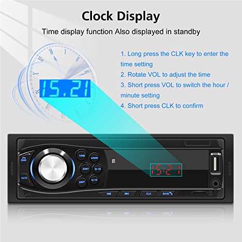 【Scheda USB/TF/ingresso AUX】 L'autoradio a singolo DIN può essere collegata a dispositivi esterni tramite l'interfaccia USB, le schede AUX o TF (fino a 32 GB). Porta di ricarica rapida USB, con telecomando.