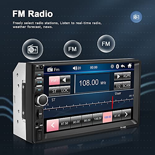 NHOPEEW Double Din Car Radio con Bluetooth e fotocamera di backup 7 pollici Touch Screen Car Stereo Supporto AUX/USB/TF Card/Mirror Link/Controllo al volante