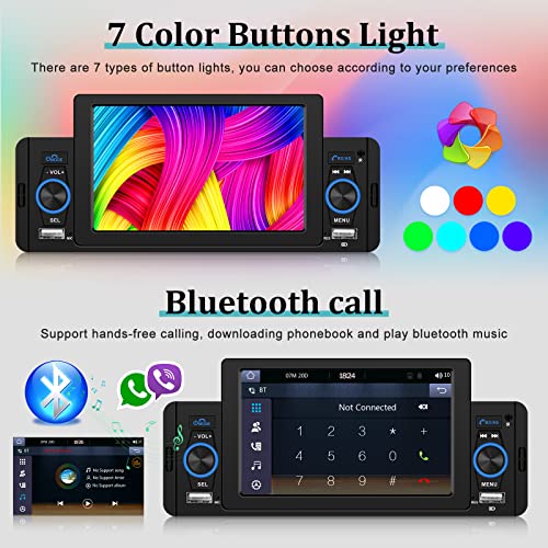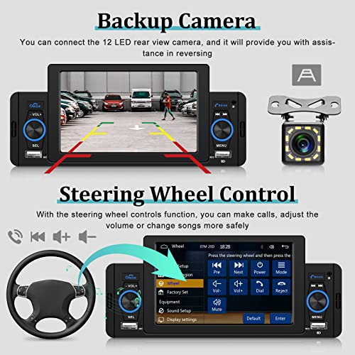 【Display multi-touch digitale retroilluminato da 5 pollici】 Schermo più grande e più chiaro, per un'esperienza visiva meravigliosa. Supporta il collegamento dello specchio del telefono, è possibile realizzare la sincronizzazione dello schermo del telefono e dello schermo radio collegando questa autoradio tramite un cavo dati USB.