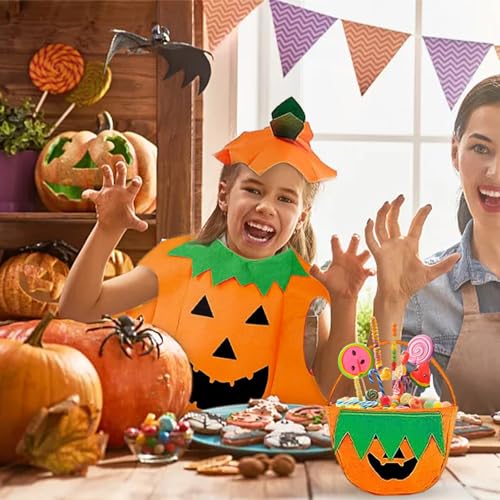 NHYDZSZ Costumi di Zucca di Halloween con Cappello e Sacchetti di Caramelle Costume da Pumpkin Costume Costume da Zucca di Halloween Unisex Per Halloween Cosplay Party Carnevale (bambino)
