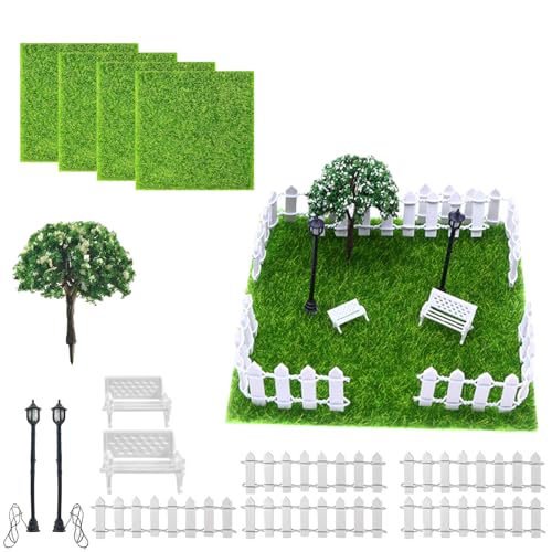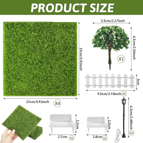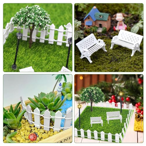 NHYDZSZ 14 Pezzi Accessori Da Giardino In Miniatura,Mini Erba Artificiale, Panca, Lampione,Albero, recinzione,Mini Set Di Decorazioni Per Mobili Da Giardino per casa delle bambole