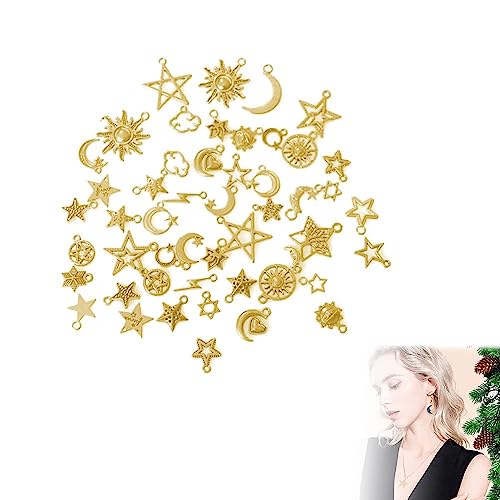 NIANOPKM 50 ciondoli con ciondoli, kit ciondolo connessione stella luna sole, ciondolo in ottone per creazione di gioielli, collane, bracciali, orecchini