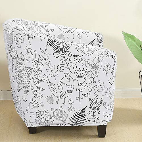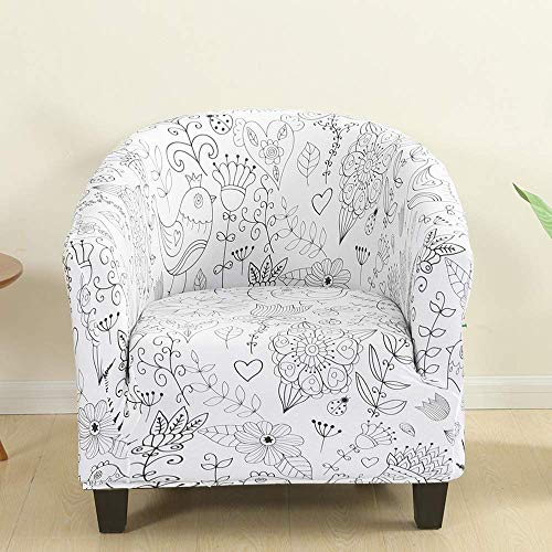 NIBESSER Copripoltrona Chesterfield Fodera Stampata Poltrona Club da Cocktail Elasticizzato Lavabile Antiscivolo 1-Pezzo Rimovibile Tub Chair Copripoltrona con Motivo Moderno (A- Fiore Bianco)