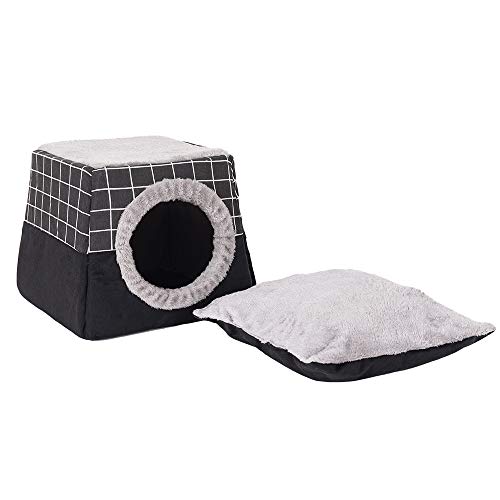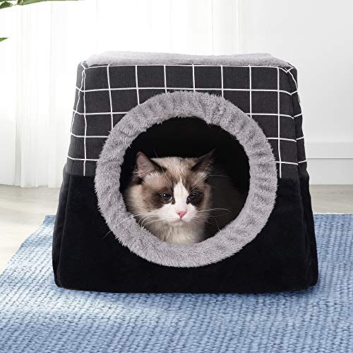 NIBESSER Nido di Gatto 2 in 1 a Doppio Uso Cuccia per Cani con Cuscino Rimovibile Morbido Comodo Casetta per Gatto a Cubo Semi-chiusa Divanetto di Cane da Interno per Quattro Stagioni(Nero,XL)