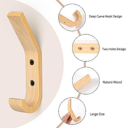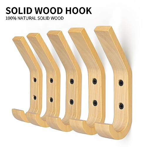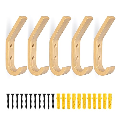 Niboken Gancio Appendiabiti di Legno, Ganci da Parete da Muro per Asciugamani Aggiornato, J Forma Ganci Appendi Cappotto Decorativi per Cappelli Vestiti Zaini Cucina e Camera da Letto (5 Pezzi)