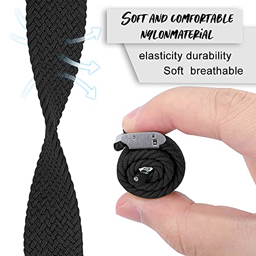 Niboow 22mm Cinturino Intrecciato per Garmin Forerunner 265/Forerunner 255/Forerunner 255 Music, Sportiva Elastica Nylon Cinturino per Garmin Vivoactive 4/Venu 2/Amazfit GTR 4 - Nero