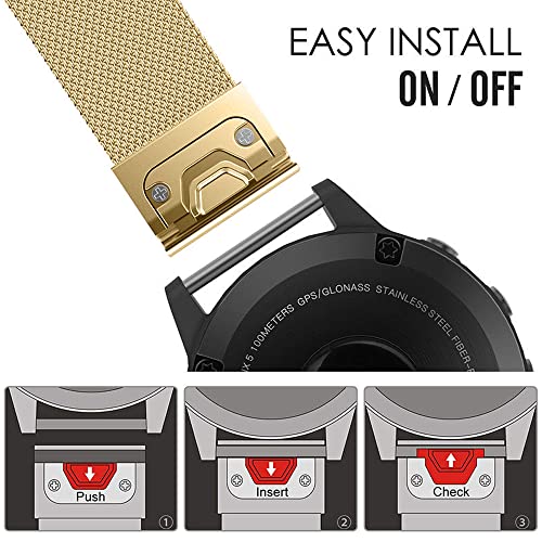 Niboow Cinturino QuickFit 20mm per Garmin Fenix 7S PRO Solar/Garmin Epix 2 PRO 42mm, Acciaio Inossidabile Magnetico Cinturino per Garmin Fenix 7S/6S/6S pro/5S/5S Plus/Garmin Descent Mk2S - Oro