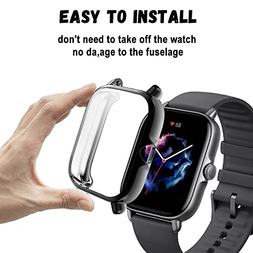 Niboow Cover [2 Pezzi] Compatibile con Amazfit GTS 3, Con Pellicola Protettiva, Protezione Ultra Sottile TPU Custodia, Morbida Custodiain Compatibile con Amazfit GTS 3-Nero+Nero