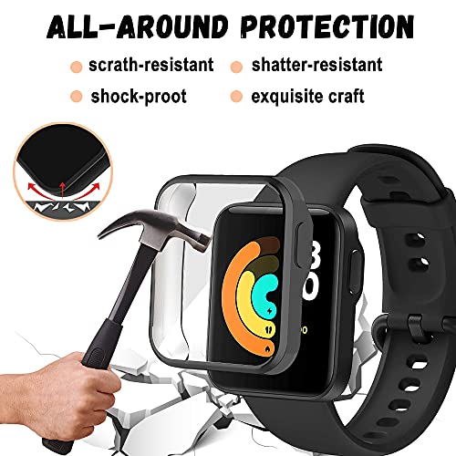 Niboow Cover [2 Pezzi] Compatibile con Xiaomi Mi Watch Lite, Con Pellicola Protettiva, Protezione Ultra Sottile TPU Custodia, Morbida Custodiain Compatibile con Xiaomi Mi Watch Lite-Nero/Nero