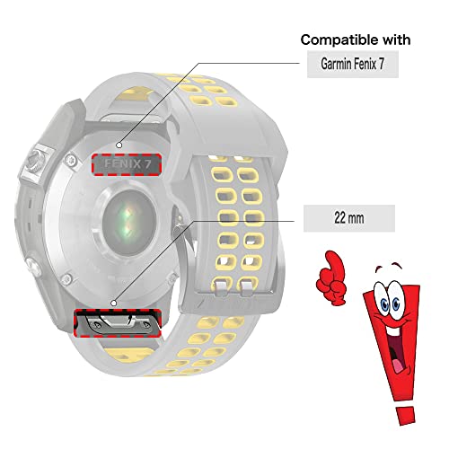 Niboow QuickFit 22mm Cinturino per Garmin Fenix 7 Pro Solar/Fenix 7/Garmin Epix 2 Pro 47mm, Silicone Sostitutivo Braccialetto per Garmin Fenix 6 GPS/6 Pro GPS/5/5 Plus/Garmin Descent G1- Grigio/Giallo