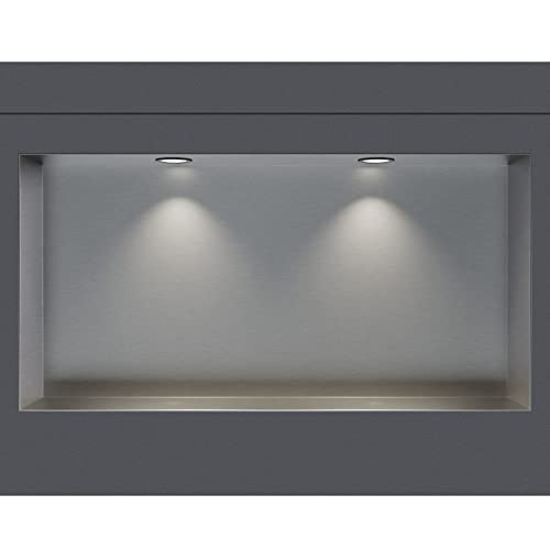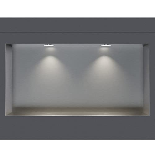 Nicchia da parete in acciaio inox NT206010X senza bordo con faretti LED - 20 x 60 x 10 cm (A x L x P) - colore selezionabile, Colore:Acciaio satinato, LED-Spot:2x Spot Einbaurahmen Schwarz matt