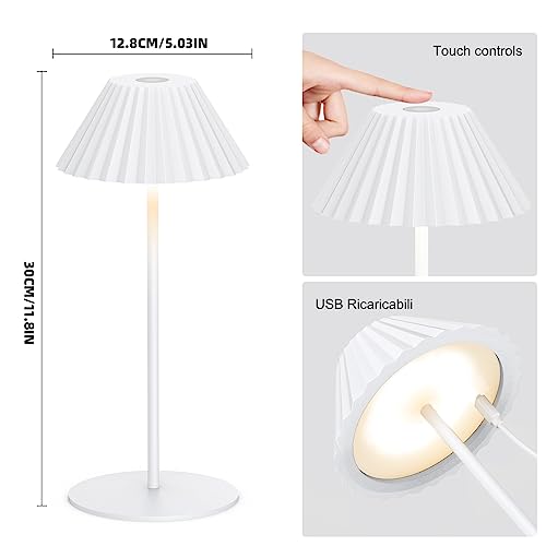 NiceBuy Lampada Da Tavolo Senza Fili Ricaricabile Touch Dimmerabile Lampade Da Tavolo LED Ricaricabili USB,Ip44 Impermeabile Per Ristoranti Ufficio Bar Camera(Bianco)