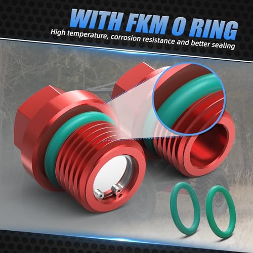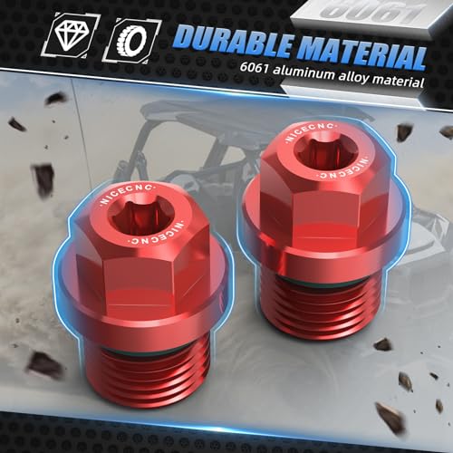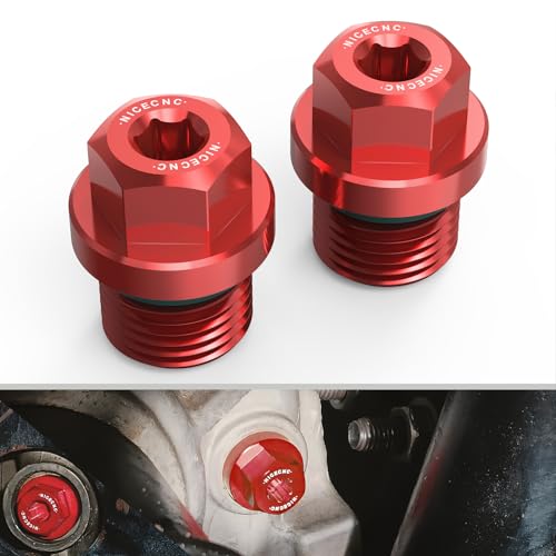 NICECNC Tappo di riempimento e scarico differenziale anteriore magnetico con kit O-Ring tappo di scarico Compatible with Polaris General 1000 2016-2020, RZR XP 900 Ranger 1000 Rosso