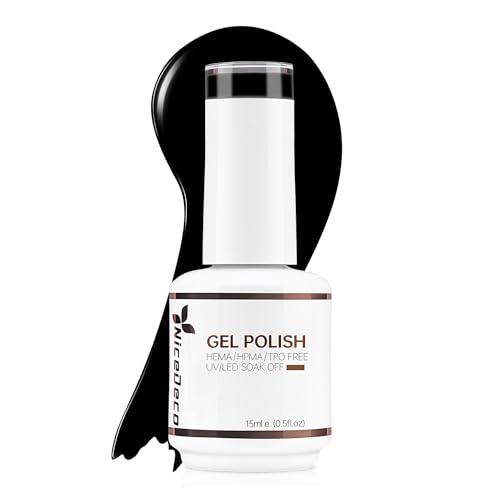 Nicedeco Nero Smalto Semipermanente per Unghie Colori, Black Gel Nail Polish Smalto per Unghie Normale in Gel Soak Off UV LED per Manicure - Classico Pure Nero (002)15ml