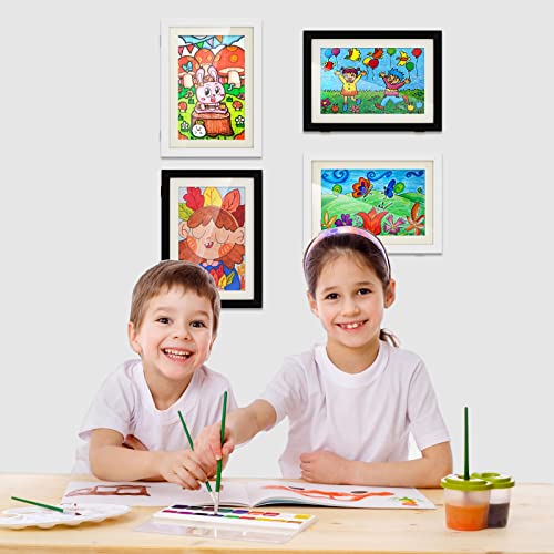 Nicekool 2Pcs Disegni Bambini Cornice - Cornici Artistiche Bambini, Cornici per Disegni Per Bambini A4 Cornice Esposizione Di Opere d'Arte Apribili Cornici per Quadri Acrilico Disegno Bambini, Bianco