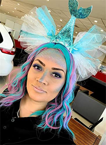 NiceLisa 40cm Breve blu viola arcobaleno colorato ricci onda costume di Halloween parata parrucche Cosplay