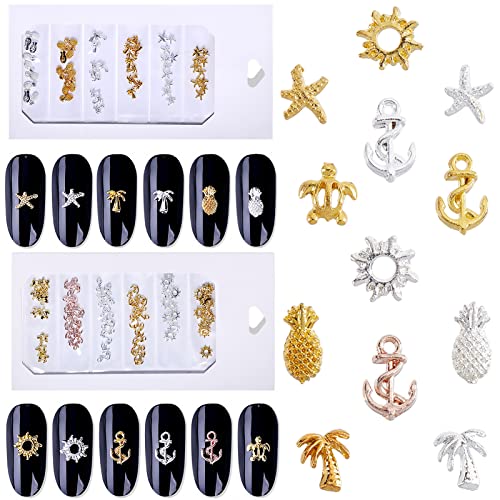 NICENEEDED 120pz Borchie per Unghie Summer Ocean, Ciondoli per Nail Art In Metallo con Stelle Marine e Tartarughe, Gioielli per Unghie con Decorazioni per Unghie A Forma Mista In Stile Punk 3D