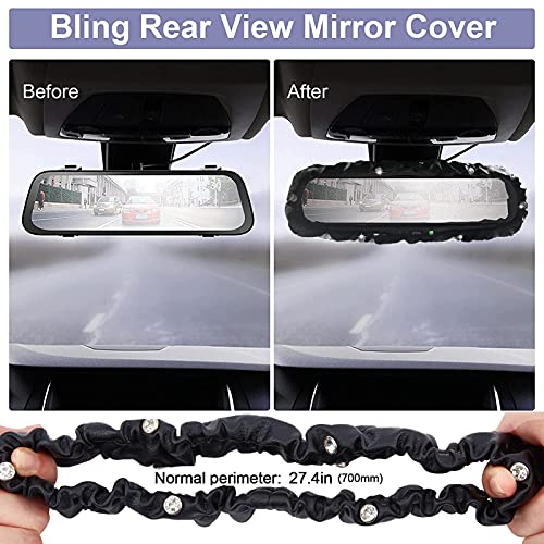 NICENEEDED Bling Accessori per Specchietti Auto, Accessori Copri Specchietto Retrovisore Diamond per Donna e Uomo, Copertura Decorativa in Pelle per Specchietto Retrovisore Interno Auto