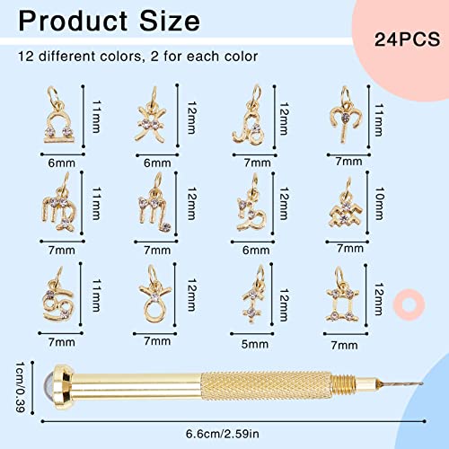NICENEEDED Charms per Piercing per Unghie Zodiaco 24pz, Anelli di Gioielli per Unghie In Oro con Trapano A Mano con Strumento per Piercing per Unghie, Unghia Forata Ciondola I Ciondoli per Nail Art