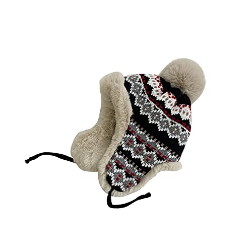 NICEYEA Berretto invernale da donna, in maglia, con paraorecchie e cappellini da neve, Nero, Taglia unica