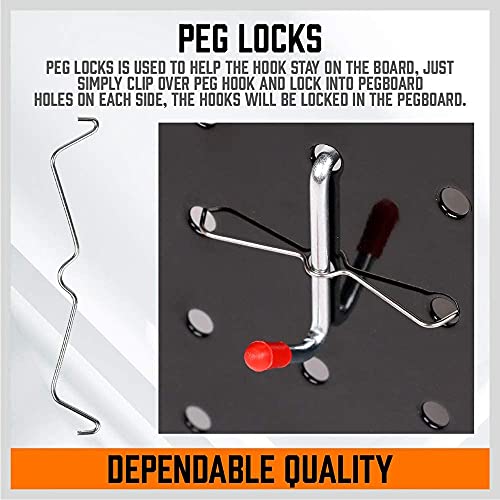 Chiusure per pioli in acciaio inossidabile: basta agganciare il gancio del piolo e bloccarlo nei fori del pannello forato su ciascun lato, aiutando il gancio a rimanere tavola.