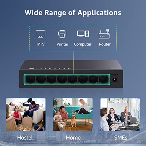 NICGIGA 8 Port Gigabit Ethernet Switch Unmanaged, Network Ethernet Splitter, Desktop or Wall Mount, Fanless, Plug And Play,Metal casing, Mini Body.