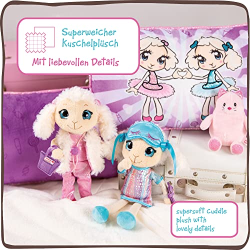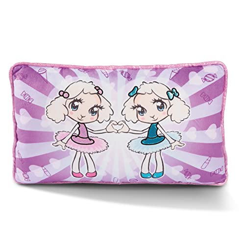 MORBIDO E COCCOLOSO: Il soffice cuscino di peluche è perfetto per il letto, il divano e in viaggio. Il morbidissimo cuscino stampato mostra le due pecorelle modaiole Twinsies, Li-Si e Si-Li, su uno sfondo caldo e carino