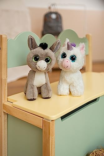 Con la sua soffice pelliccia di peluche bianco, i luccicanti occhi blu, la criniera e la coda viola e il corno brillante sulla fronte, l'unicorno in piedi di 17 cm si ritaglierà uno spazio nei cuori dei fan di tutte le età;