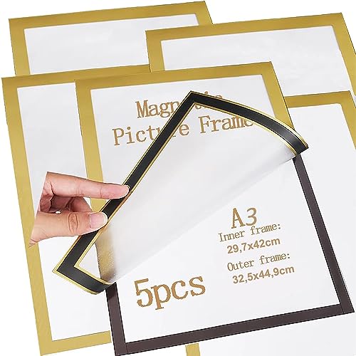 Niciksty 5pz A3 Cornice Magnetica Autoadesiva,Informazioni Cornice Oro, Display Impermeabile,Coperture per Segnaletica,Foto,Documenti,Pareti e Finestre(32,5x45cm)