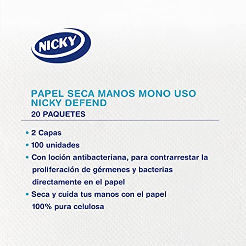 Nicky Defend - Carta a 2 strati, con lozione antibatterica, 100% pura cellulosa biodegradabile, 10 confezioni, 100 mani secche per confezione