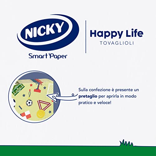 Nicky Happy Life - 20 Tovaglioli a 3 Veli, Fantasia a Tema Calcio, Allegri e Decorati, 100% Pura Cellulosa Certificata FSC®