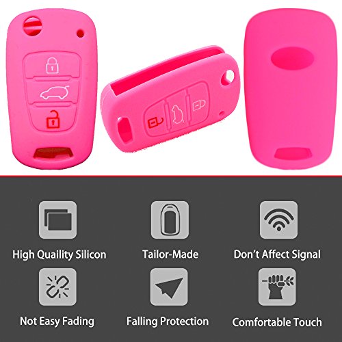 Nicky Rosa Cover Protettiva in Silicone per Chiave Pieghevole Hyundai Kia con 3 Tasti Copertura del Telecomando Automatico