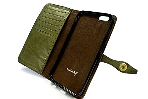 Nicola Meyer - iPhone 6S e 6 Plus 5.5” Custodia a Libro in Cuoio con 6 Porta Carte di Credito e Banconote Colore Olive Green
