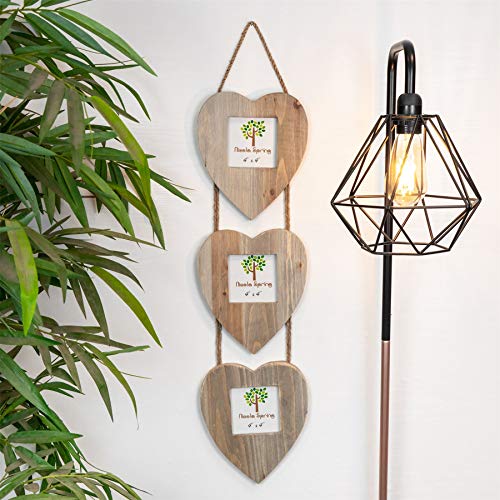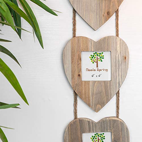 Nicola Spring Cornice Tripla per 3 Foto da Appendere - in Legno - Forma a Cuore - 10 x 10 cm
