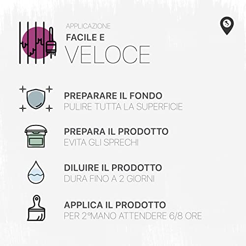 è possibile applicarlo con rullo a pelo raso, a pennello e a spruzzo.Facile da usare adatto al fai da te.