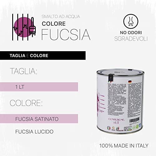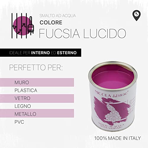 NICOLA VERNICI Smalto Acrilico a Base di Acqua, Per Interni ed Esterni, Made in Italy, Fucsia Lucido - Formato 1 lt