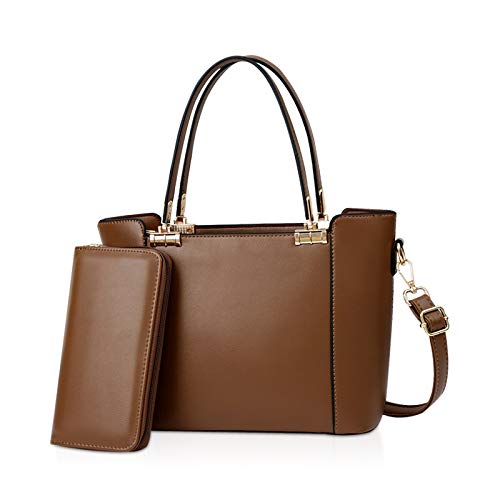 NICOLE & DORIS 2 borse da donna semplici - grande capacità - borsa da donna + borsa a tracolla alla moda, Caffè, L, Borse tote