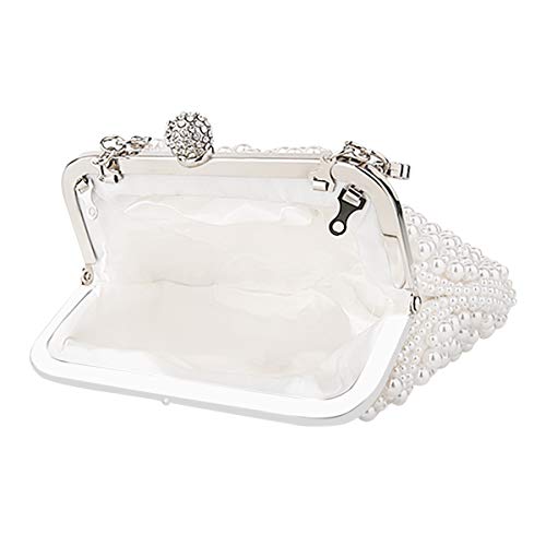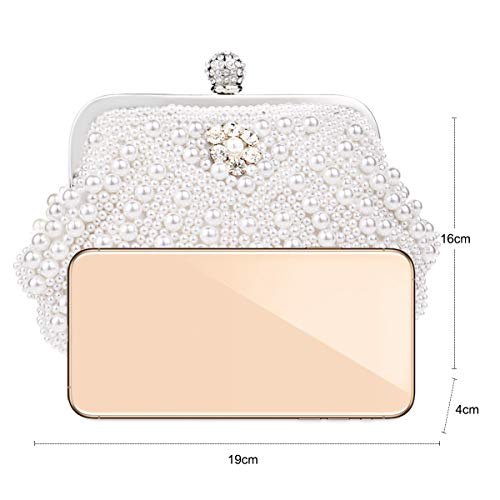 NICOLE & DORIS Pochette Donna Elegante Clutch Cerimonia Borsa da Sera Borsetta perla Catena Strass per Matrimonio Festa Cocktail bianca