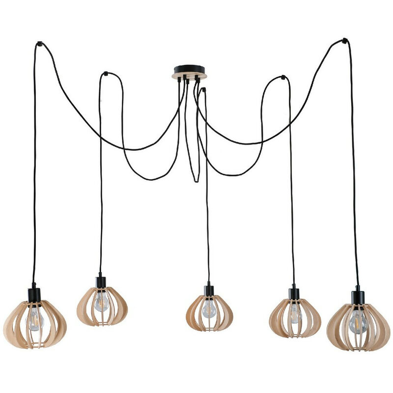 Keter Lighting - 829 Nicoleta Cluster Lampada da soffitto a sospensione nera, 5x E27 | Finitura: nero | Altezza: min. 40 max. 180 cm | Lunghezza: min. 40 max. 180 cm | Larghezza: min. 40 max. 180 cm | Tipo di lampada: E27 | N. di lampade: 5 | Lampadina inclusa: no | Dimmerabile: Sì - Sono necessarie lampadine dimmerabili | Potenza (max): 60 W