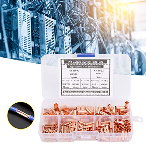 Nicoone 250Pcs Tubo di Rame Del Connettore Kit Terminale di Collegamento Filo Set Forniture Hardware