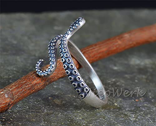 NicoWerk Anello da donna in argento Sterling 925 con cravatta vintage annerita, regolabile, aperto SRI698