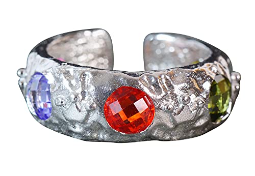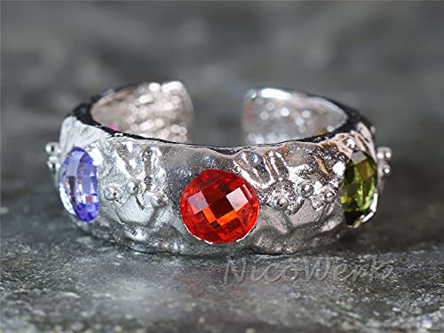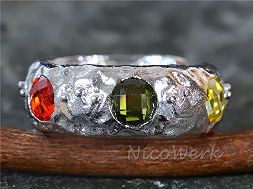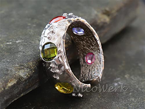 NicoWerk Anello da donna in argento sterling 925 con pietra rustica opaca, con zirconi e zirconi regolabili, SRI649