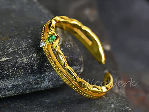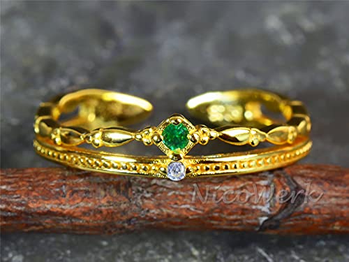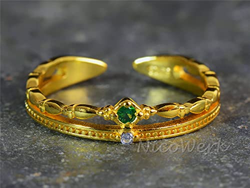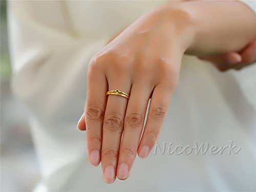NicoWerk Anello da donna semplice in argento sterling 925 dorato, doppio filo, con pietra verde e zirconi regolabili, SRI711