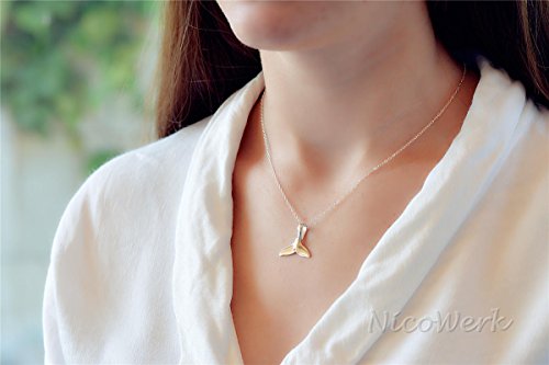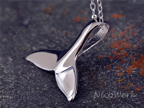 NicoWerk - Ciondolo in argento con coda di delfino, coda di balena, liscio, motivo mare, simpatico, da donna, in argento 925, SAN147, Argento sterling