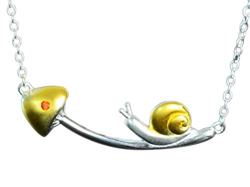 Collana in argento Sterling 925, opaca, parzialmente placcata oro, con ciondolo a forma di lumaca su fungo