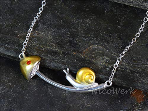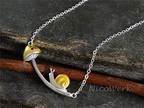 NicoWerk Collana da donna in argento sterling 925 con lumaca e funghi dorati opachi SKE526
