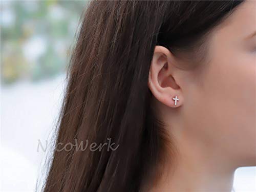 NicoWerk SOS383 - Orecchini da donna in argento Sterling 925, a forma di croce, con zirconi